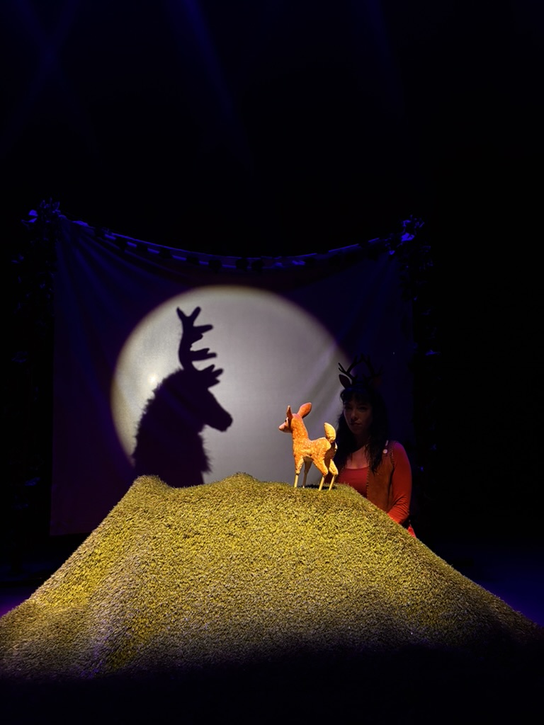 "Bambi" es una obra de teatro de títeres y objetos basada en la novela original de "Bambi, una vida en el bosque" de Félix Salten, una novela lírica y profunda que relata la vida de un joven corzo hasta que se convierte en un ciervo adulto. Interpretada por Alba Vergne y dirigida por Malgosia Szkandera, esta obra despliega una visión poética y realista del ciclo de la vida en la naturaleza. No es sólo un cuento de animales, es un relato con una profundidad filosófica sobre los vínculos y la naturaleza, que transmite valores como la empatía, el autoconocimiento, la resiliencia, la interconexión y el respeto por la vida silvestre y el equilibrio natural, a través del crecimiento y maduración del joven Bambi.